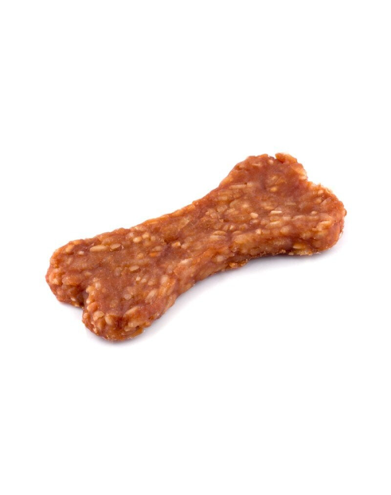 Composition : blanc de poulet 60%, riz 24,9%, glycérine naturelle 5%, amidon 2%, protéines d'arachide 5%.
