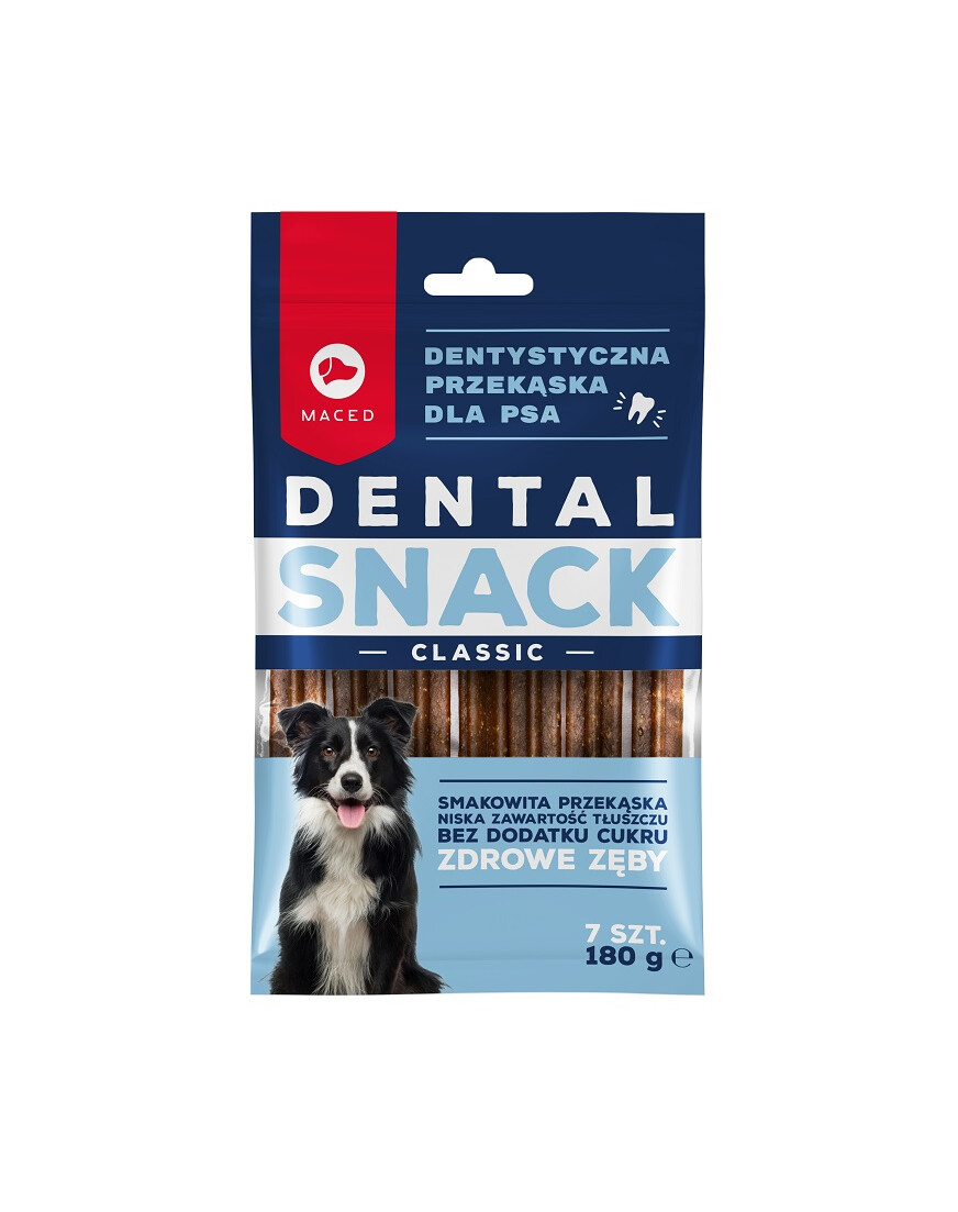 Maced Dental Snack est un produit à mâcher à faible teneur en matières grasses qui aide à garder les dents et les gencives propres et saines. Sa forme unique peut réduire l'accumulation de tartre, et les vitamines et la biotine qu'il contient aident à prendre soin de la santé et du pelage de votre chien. Sa taille le rend idéal pour les races moyennes à grandes. Le produit à mâcher peut être donné aux chiots âgés de plus de 6 mois et est facile à diviser en petites portions sans se salir les mains. Sans sucre ajouté.