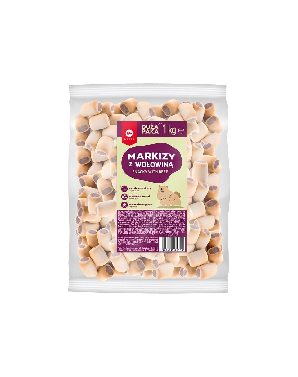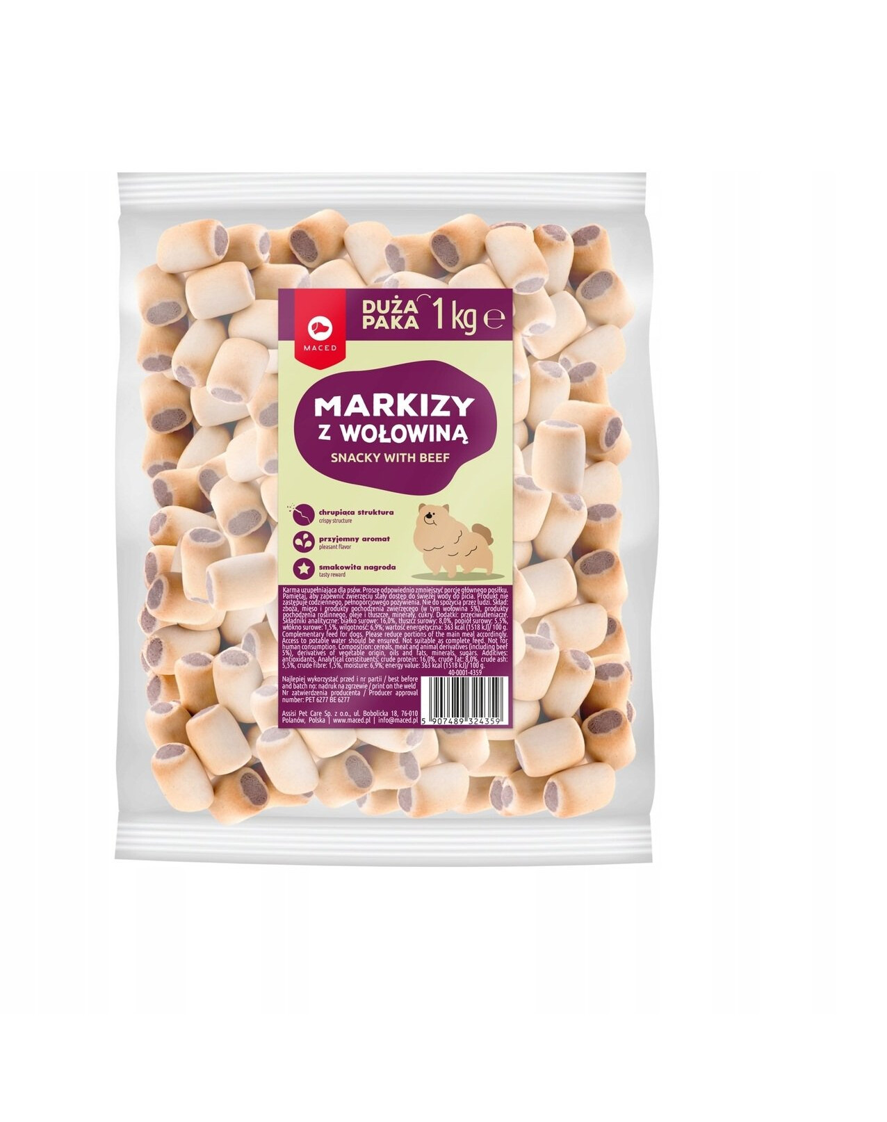 MACED Marquees est une friandise qui constitue un excellent complément à l'alimentation quotidienne. Son goût et son arôme de viande en font un en-cas exceptionnellement savoureux et croquant pour tous les chiens. Cette friandise sont un véritable festin pour vos animaux de compagnie et une source de protéines à haute énergie. Cette friandise peut être donnée en récompense d'un bon comportement ou pendant le dressage. C'est une friandise universelle pour tous les chiens. Ne contient pas d'arômes artificiels.