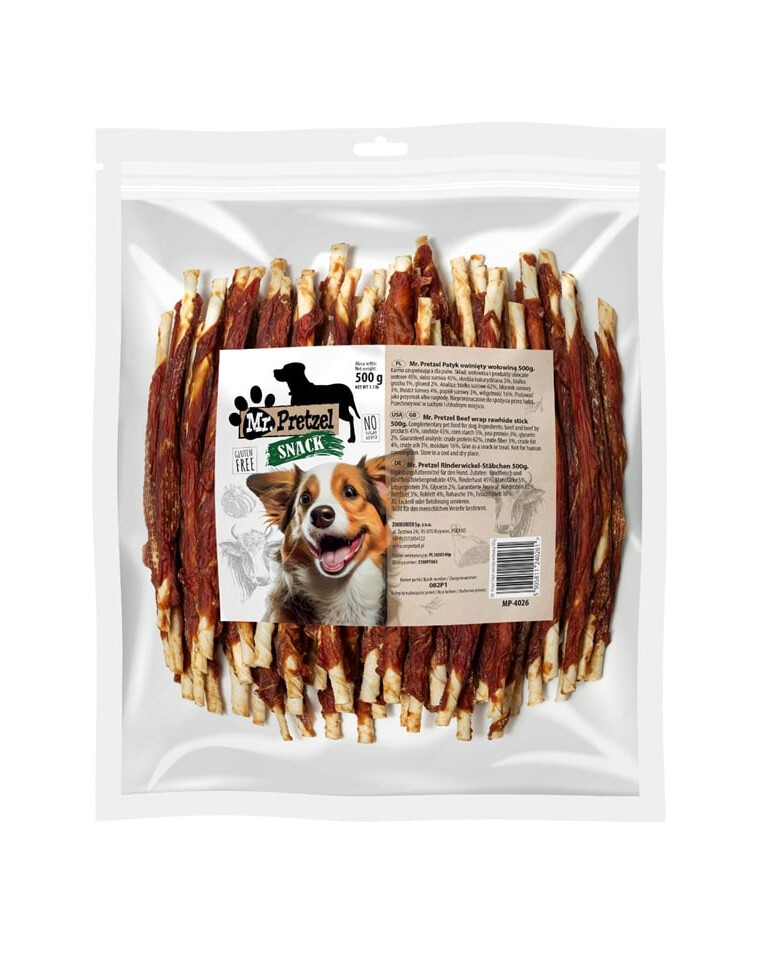 Notre bâton enroulé de viande de boeuf de la marque Mr. Pretzel est une friandise premium exceptionnelle qui allie un goût délicieux à une fonctionnalité.