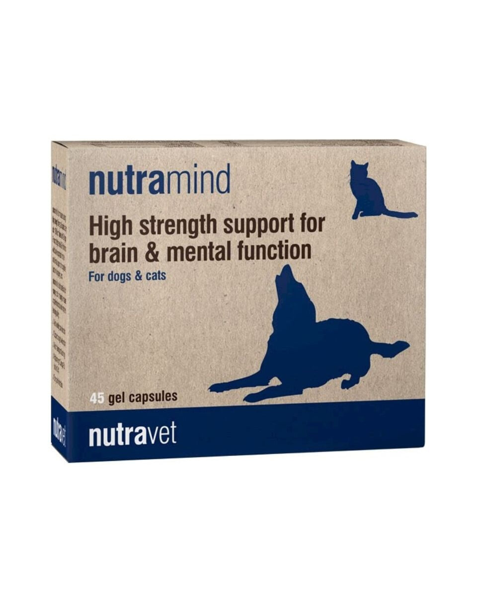 Nutramind contient des acides oméga-3 particulièrement riches en DHA, associés au ginkgo, à la phosphatidylsérine et aux vitamines B, qui sont importants pour le soutien nutritionnel des fonctions cognitives chez les animaux de compagnie vieillissants.