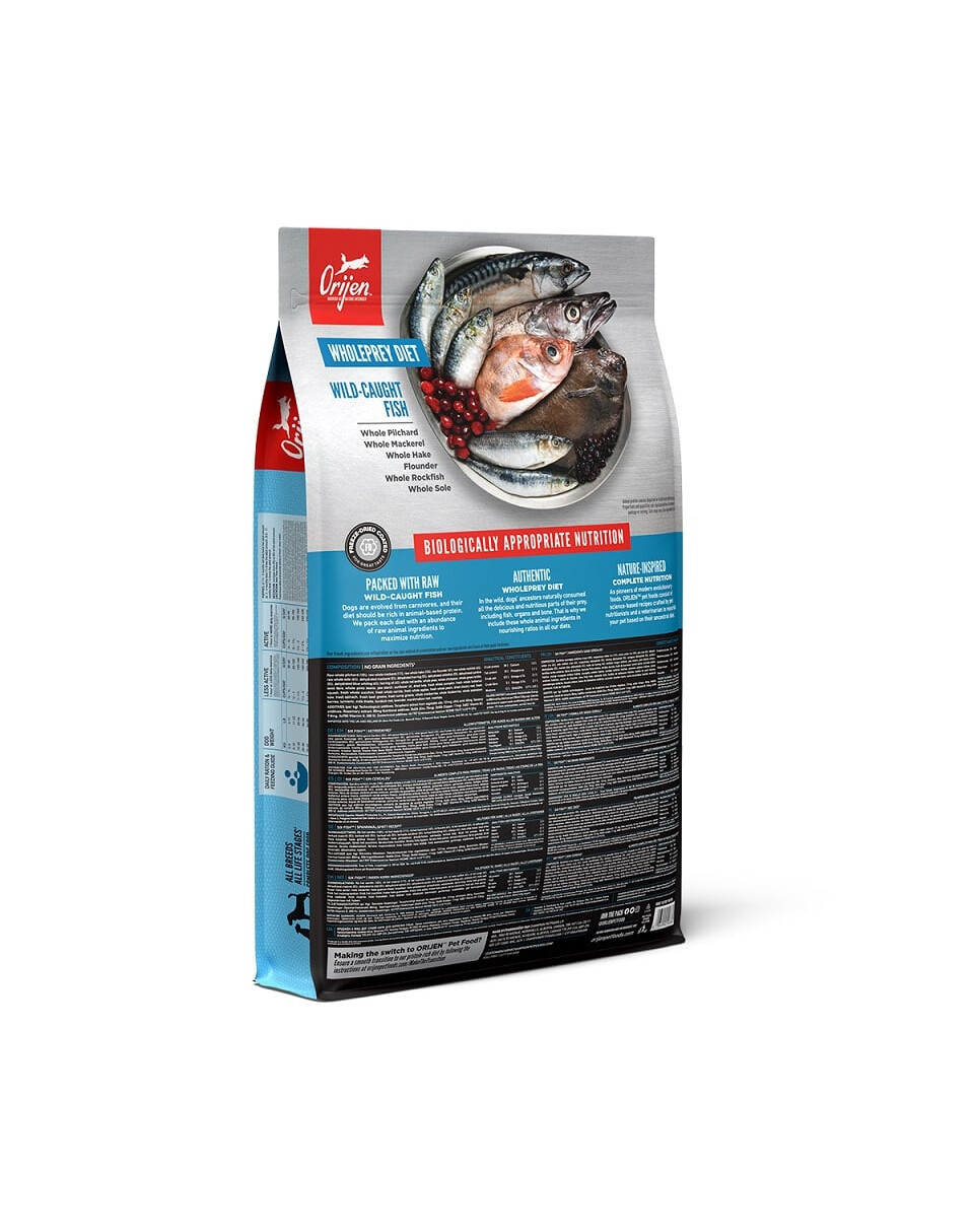 Sardines entières fraîches (18%), maquereau entier frais (13%), merlu entier frais (12%), flet entier frais (5%), sébaste entier frais (5%), sole entière fraîche (5%), maquereau entier (déshydraté, 5%), hareng entier (déshydraté, 5%), Morue entière (déshydratée, 4,5%), sardines entières (déshydratées, 4,5%), merlan bleu entier (déshydraté, 4%), huile de hareng (4%), lentilles rouges entières, lentilles vertes entières, pois verts entiers, fibres de lentilles, pois chiches entiers, pois jaunes entiers, huile de tournesol (pressée à froid), haricots pinto entiers, foie de morue (lyophilisé), citrouille entière fraîche, pastèque entière fraîche, courgette entière fraîche, panais entier frais, carottes entières fraîches, pommes red delicious entières fraîches, poires bartlett entières fraîches, chou frisé frais, épinards frais, feuilles de betterave fraîches, feuilles de navet fraîches, varech brun, canneberges entières, myrtilles entières, amélanches entières, racine de chicorée, curcuma, chardon béni, racine de bardane, fleur de lavande, racine de valériane, églantier.