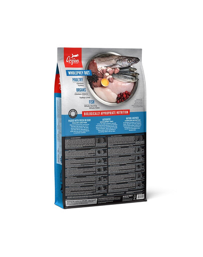 L'alimentation est basée sur la viande de poulet et de dinde, à laquelle s'ajoutent des poissons provenant de captures naturelles et des œufs de grange. Le poisson - par exemple le hareng ou la limande - est une riche source de graisses et d'acides gras insaturés oméga-3 et -6, qui renforcent le cœur et le système nerveux du chien, tout en maintenant l'aspect sain de sa peau et de son pelage. En outre, l'aliment a été enrichi en zinc pour un pelage fort et sain et en chondroïtine et glucosamine pour renforcer les os et les articulations et minimiser le risque de blessure ou de dislocation.