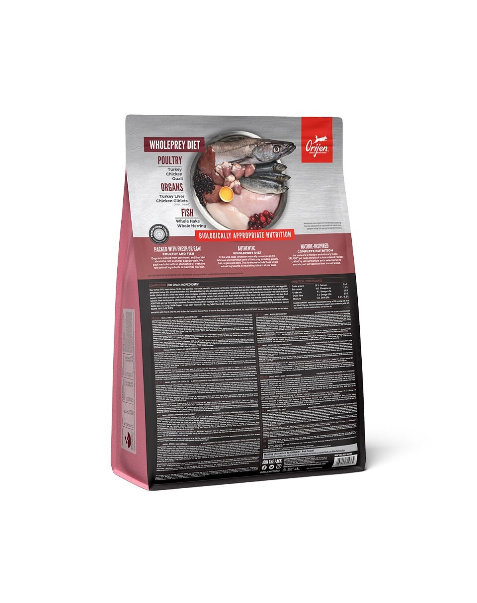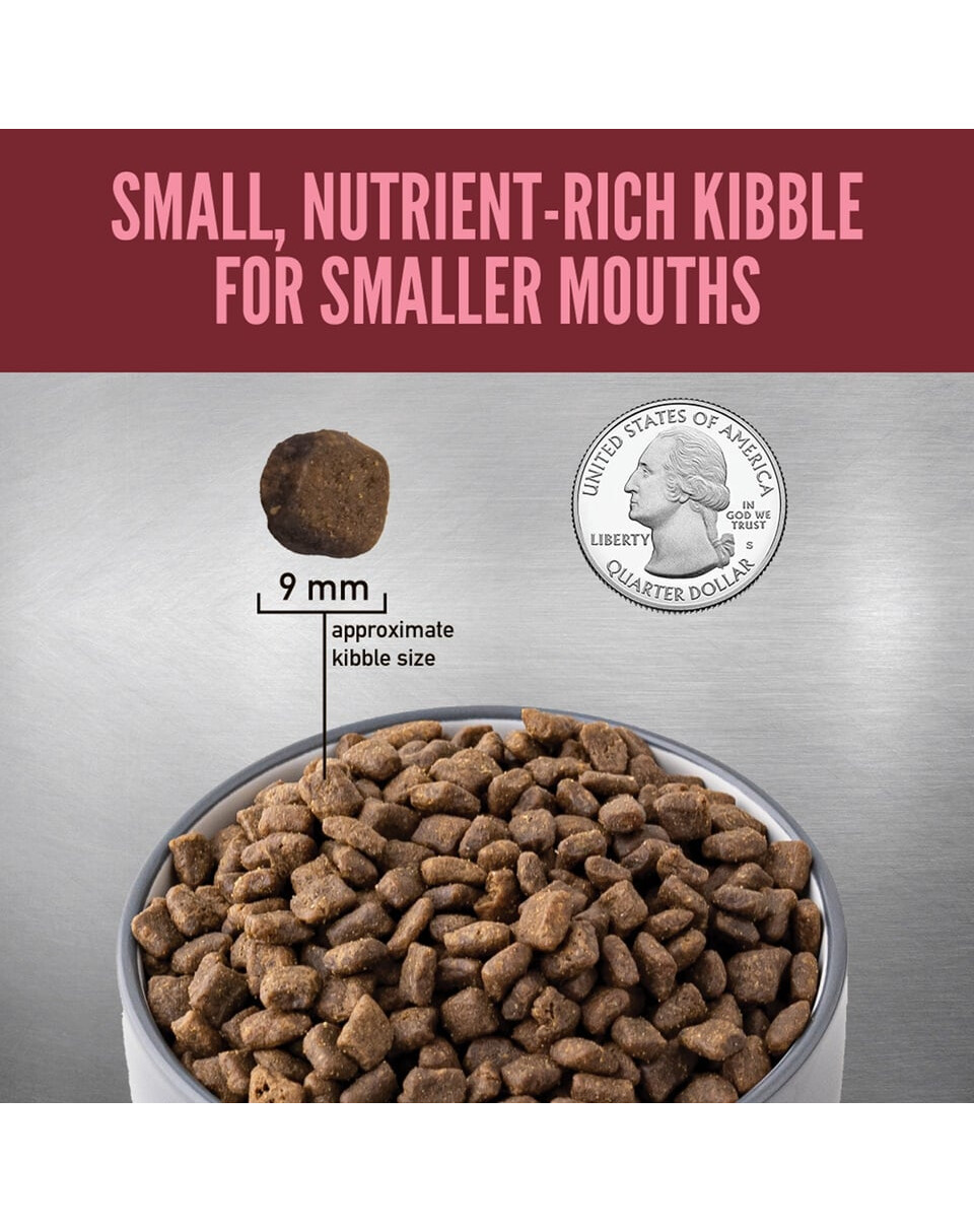 Orijen Small Breed est riche en dinde, poulet, caille, œufs de poules et poisson. Cet aliment a été spécialement formulé pour les petits chiens. Les chips de petite taille sont plus faciles à consommer pour les petits chiens. Les ingrédients carnés de la formule Petites Races sont issus d'espèces animales de petite taille, reflétant le régime évolutif des chiens de petite race.