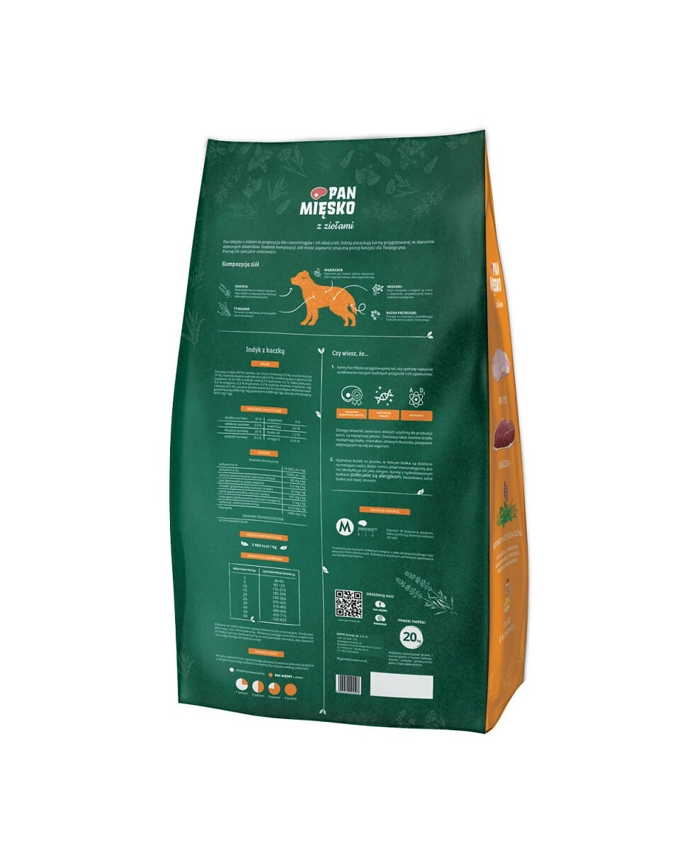 Pan Miesko aux herbes, dinde et canard est une nourriture complète pour chiens adultes de races moyennes.