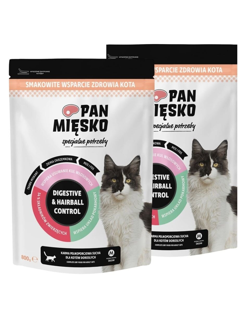 Pan Mięsko – Digestive & Hairball Control est plus qu'un repas – c'est un souci quotidien pour le confort digestif et le pelage sain de votre chat.