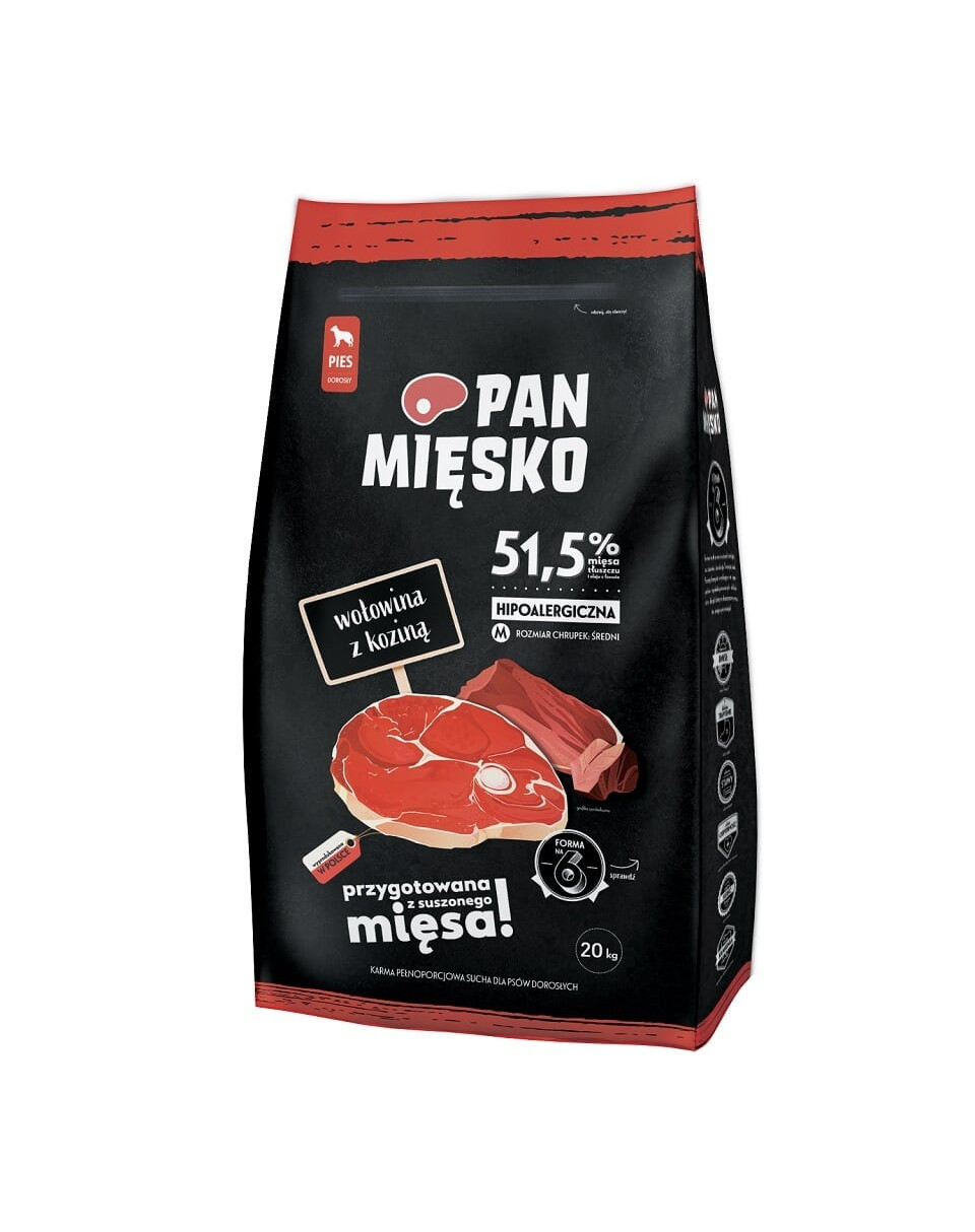 Faites connaissance avec les croquettes pour chiens Pan Mięsko. Ils se distinguent par des ingrédients soigneusement sélectionnés avec des pommes polonaises juteuses, des légumes sains et des nutriments précieux qui affecteront positivement la santé et la condition de votre chien. Nos recettes ont été préparées par des spécialistes pour fournir à votre compagnon à quatre pattes exactement ce dont il a besoin. Votre chien mérite ce qu'il y a de mieux.