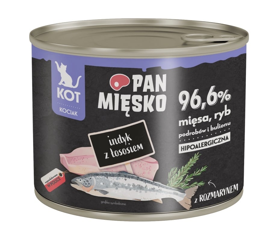 Pan Mięsko avec romarin est une proposition idéale pour les chatons qui ont besoin d'un soutien naturel pour leur immunité, leur énergie et leur développement sain. C'est une combinaison de goût excellent, de valeurs nutritionnelles et de soin du bien-être de chaque jeune chat.