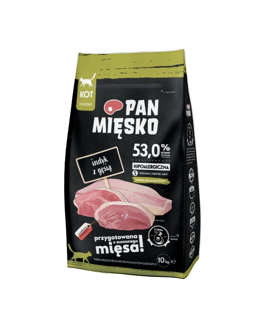Découvrez les croquettes hypoallergéniques pour chats de Pan Mięsko. Elles se distinguent par des viandes soigneusement sélectionnées, avec des pommes polonaises juteuses, des légumes sains et des nutriments précieux qui influenceront positivement la santé et la condition de votre chat. Nos recettes ont été préparées par des spécialistes pour fournir à votre compagnon à quatre pattes exactement ce dont il a besoin. Votre chat mérite ce qu'il y a de mieux.