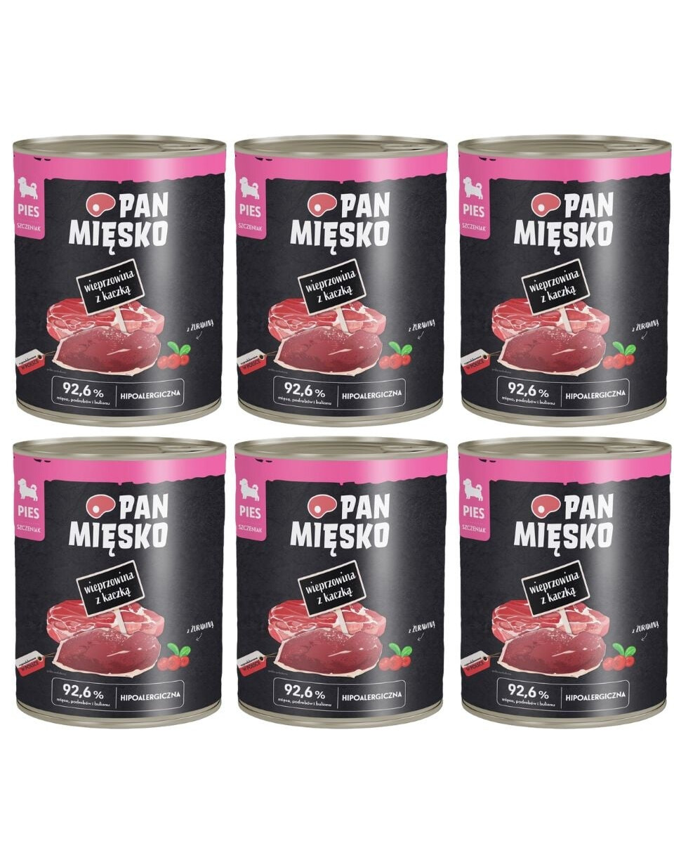 Découvrez les aliments humides riches en viande pour chiens Pan Mięsko. Ils se distinguent par des viandes soigneusement sélectionnées, ajoutées de juteux pommes polonaises et d'additifs précieux, tels que des herbes ou des graines, qui auront un effet positif sur la santé et la condition de votre chien. Nos recettes ont été préparées par des spécialistes pour fournir à votre compagnon à quatre pattes exactement ce dont il a besoin. Votre chien mérite le meilleur.