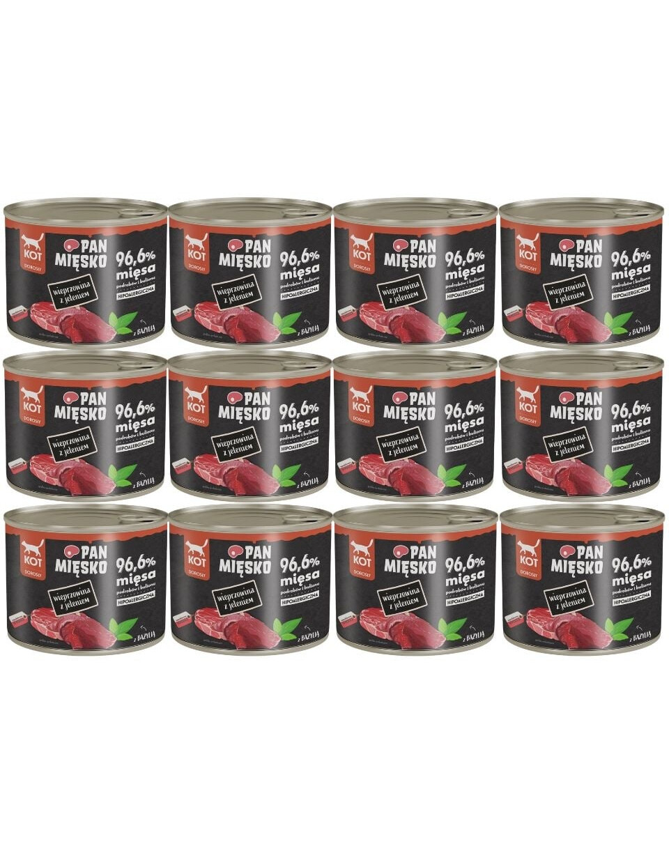Pan Mięsko est une nourriture humide exceptionnelle conçue pour les chats adultes qui méritent un repas nutritif et naturel chaque jour. Sa recette est basée sur 96,6 % de viande, d'abats et de bouillon, garantissant un goût excellent, une haute valeur nutritionnelle et une absorption facile des protéines.