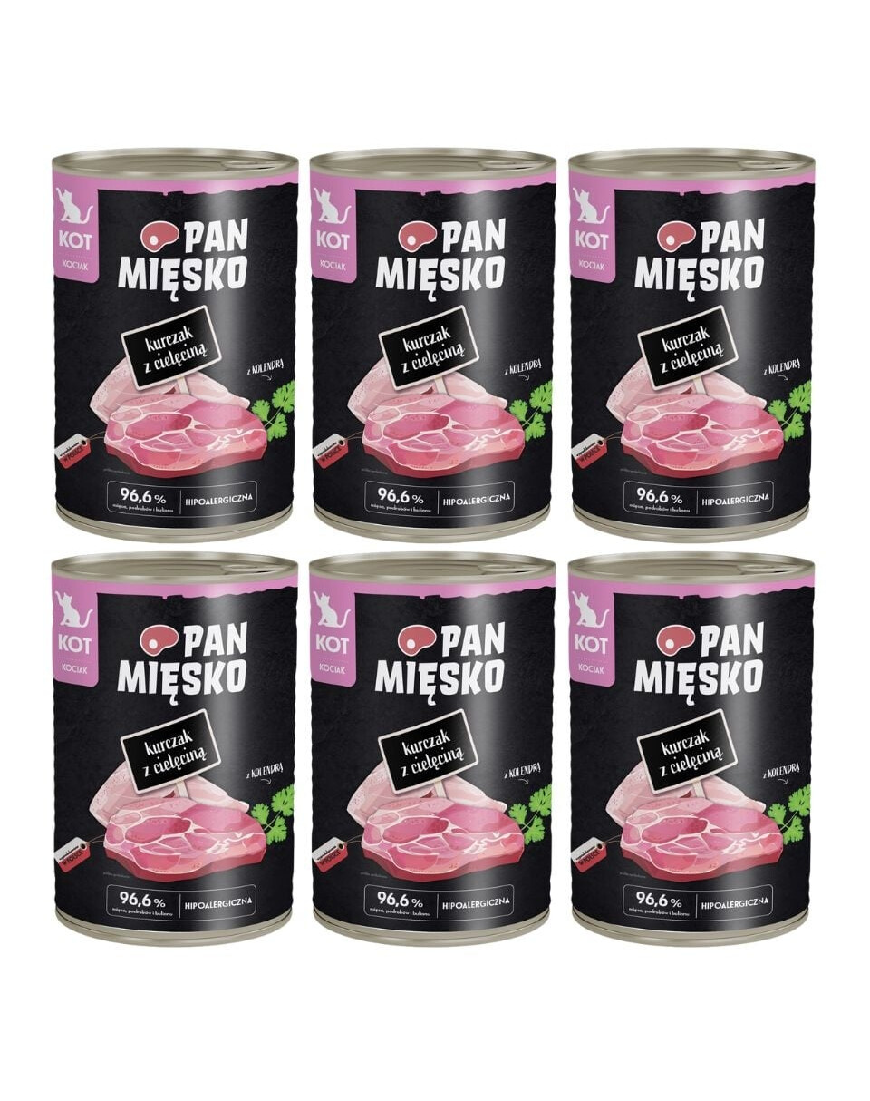 Découvrez les nourritures humides riches en viande pour chats Pan Mięsko. Elles se distinguent par des viandes soigneusement sélectionnées, ajoutées de juteuses pommes polonaises et d'additifs précieux, tels que des herbes ou des graines, qui auront un impact positif sur la santé et la condition de votre chat. Nos recettes ont été élaborées par des spécialistes afin de fournir à votre compagnon à quatre pattes exactement ce dont il a besoin. Votre chat mérite le meilleur.