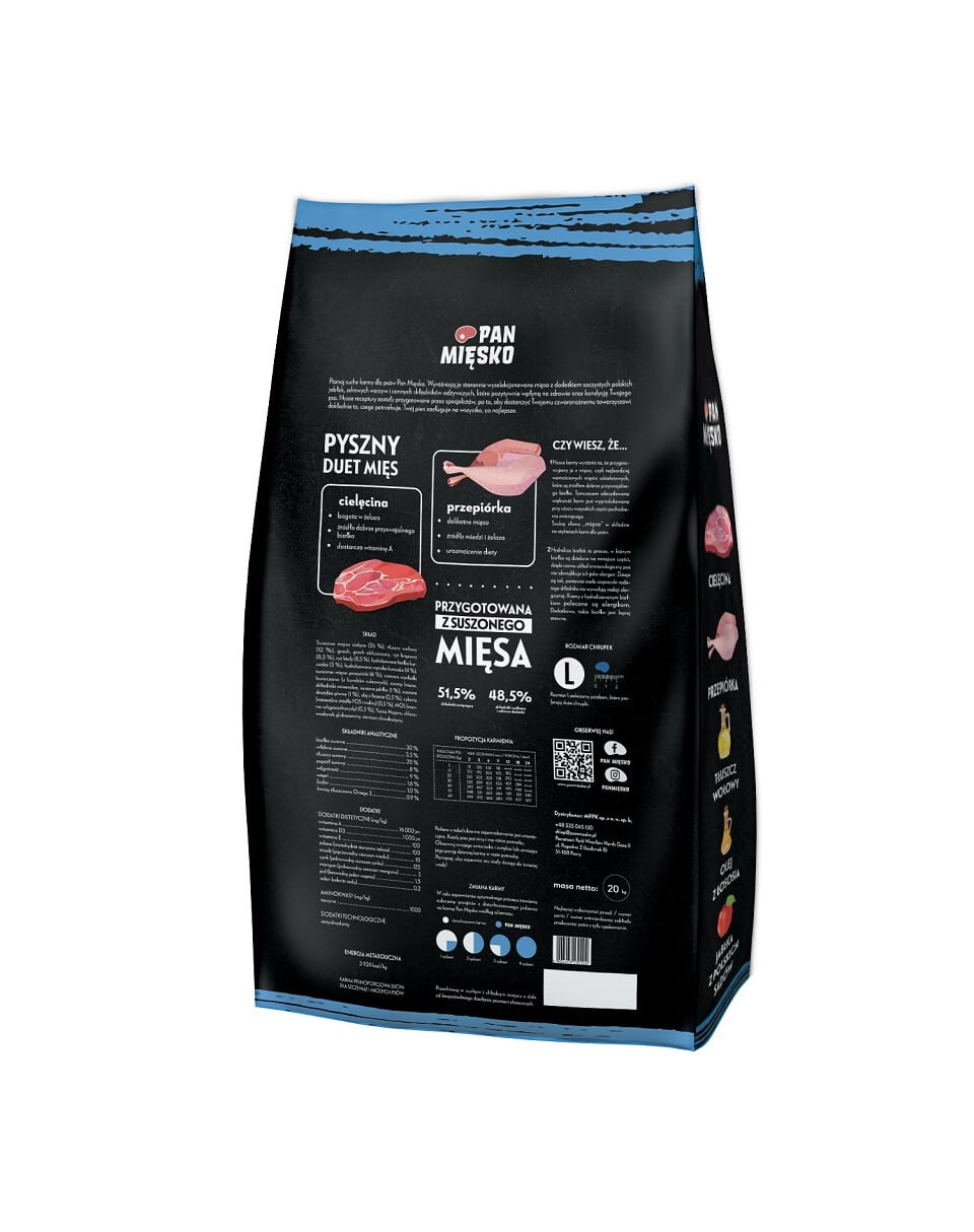 Découvrez les aliments secs pour chiens Pan Mięsko. Ils se distinguent par des ingrédients soigneusement sélectionnés, ajoutés de jolis pommes polonaises, de légumes sains et d'ingrédients nutritifs précieux qui auront un impact positif sur la santé et la condition de votre chien. Nos recettes ont été élaborées par des spécialistes pour fournir à votre compagnon à quatre pattes exactement ce dont il a besoin. Votre chien mérite le meilleur.