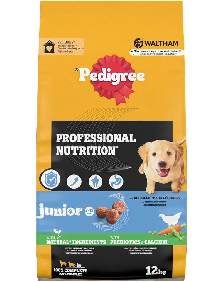 La nourriture sèche pour chiots PEDIGREE COMPLETE est un repas 100% complet et équilibré préparé avec des ingrédients naturels, enrichi en vitamines, minéraux et prébiotiques – tout ce dont chaque chiot a besoin pour avoir l'énergie d'une vie joyeuse et pleine. Sans ajout de colorants artificiels ni d'arômes.
