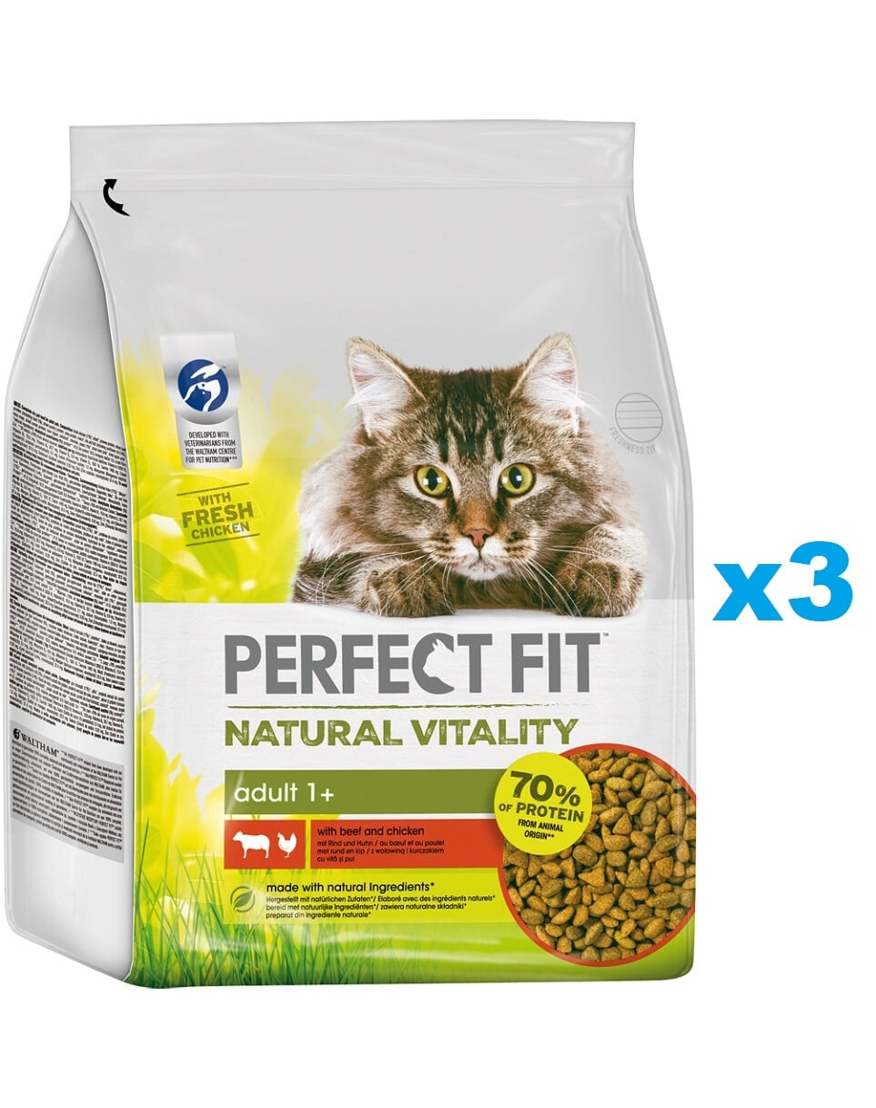 Avantages des croquettes pour chat Perfect Fit Natural Vitality au bœuf et au poulet :