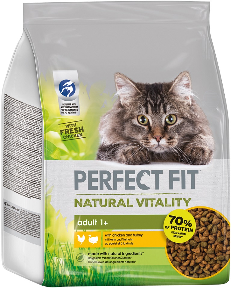 Avantages de l'alimentation avec les croquettes pour chat Perfect Fit Natural Vitality au poulet et à la dinde :