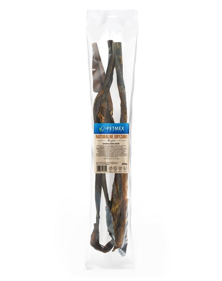Une friandise unique et naturelle fabriquée à partir de peau de sanglier séchée. C'est une collation aromatique et durable qui satisfait le besoin naturel de mâcher, soutient l'hygiène buccale et procure au chien des sensations gustatives intenses. La viande de gibier est une source de protéines hypoallergénique rarement rencontrée – idéale pour les chiens ayant des sensibilités alimentaires ou des allergies.