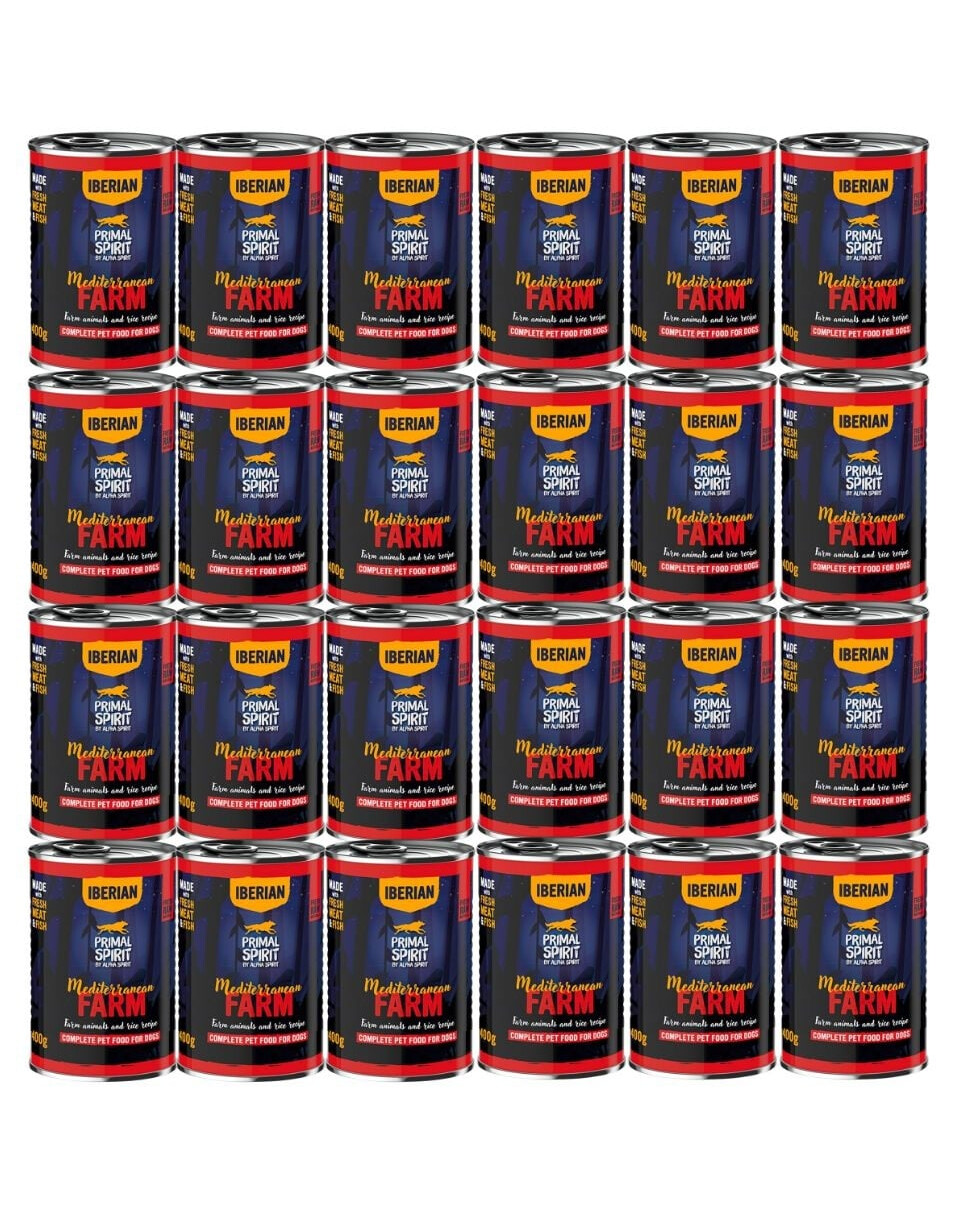 Vous cherchez une nourriture qui combine des ingrédients naturels, une haute teneur en viande et un goût excellent auquel votre chien ne pourra pas résister ? Primal Spirit Iberian – Mediterranean Farm est une nourriture humide complète inspirée par la nature méditerranéenne et les instincts alimentaires canins. Elle fournit les nutriments essentiels qui soutiennent la santé, l'immunité et l'énergie de votre chien chaque jour.