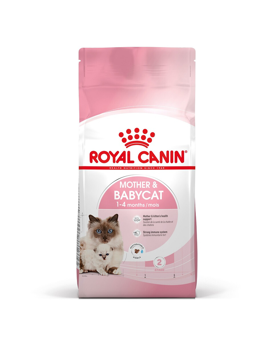 ROYAL CANIN® Mother & Babycat est spécialement formulé pour améliorer la tolérance digestive en réduisant la quantité d’éléments nutritifs non digérés. Il est enrichi en DHA, un acide gras oméga-3 naturel qui favorise le développement général du cerveau de votre chaton. Aliment complet et équilibré pour chats - Spécial chatte en gestation/lactation et ses chatons 1er âge (de 1 à 4 mois).