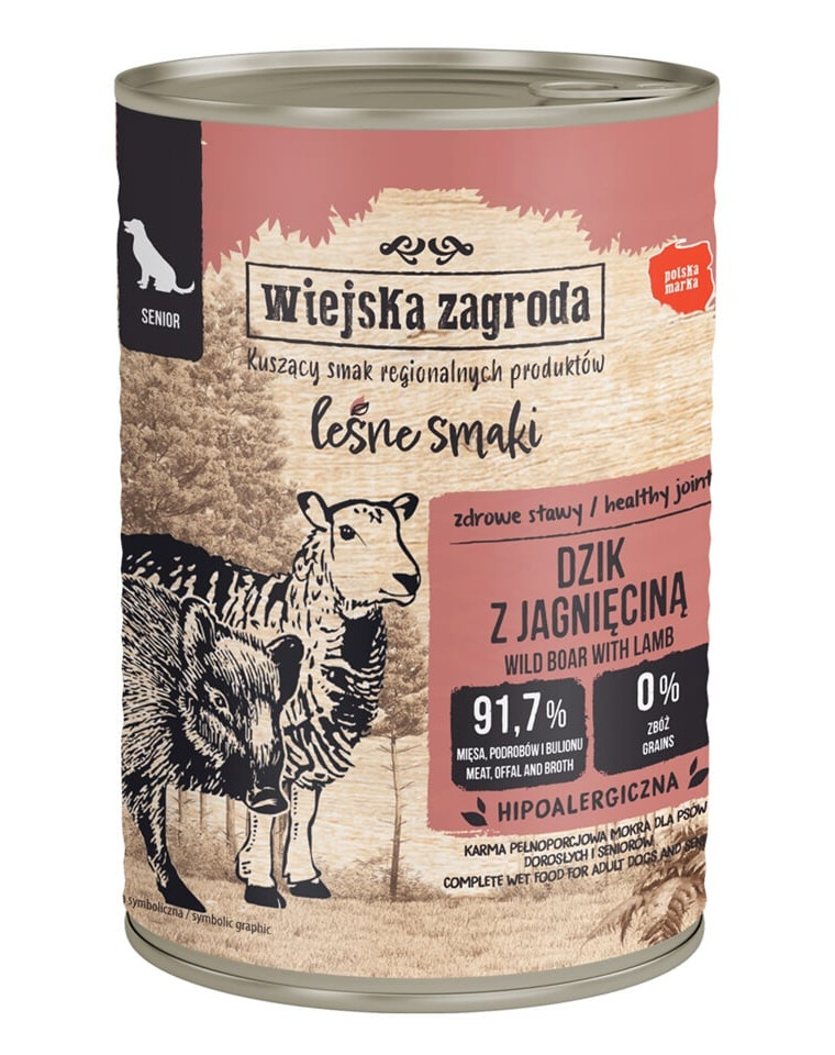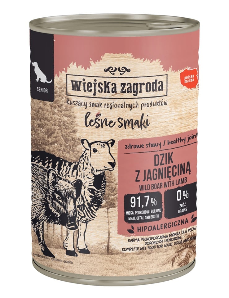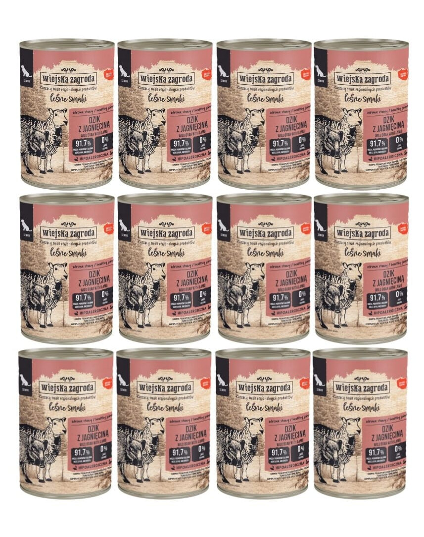 Saveurs forestières Sanglier & agneau nourriture humide pour chiens âgés 12×400 g