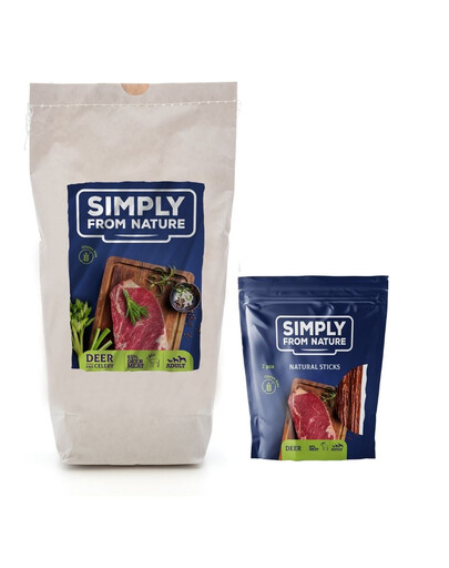 La viande de cerf contient relativement peu de graisse. Elle constitue une très bonne source de protéines animales complètes et de fer. L'enveloppe de collagène comestible rend le produit tendre. Le collagène, en tant que protéine du tissu conjonctif, est responsable du bon fonctionnement du système squelettique. Il retarde le processus de vieillissement et contribue au maintien d'un pelage sain. Le collagène en boyau est un produit naturel et entièrement digestible. Il permet de conserver la friandise sous une forme donnée, tout en ayant un goût agréable pour les chiens.