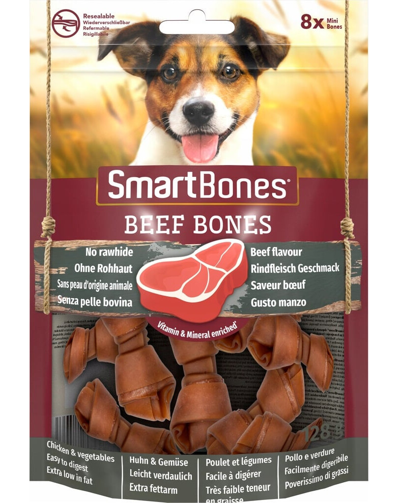 Produit à mâcher au goût de bœuf pour les chiens de petite race.