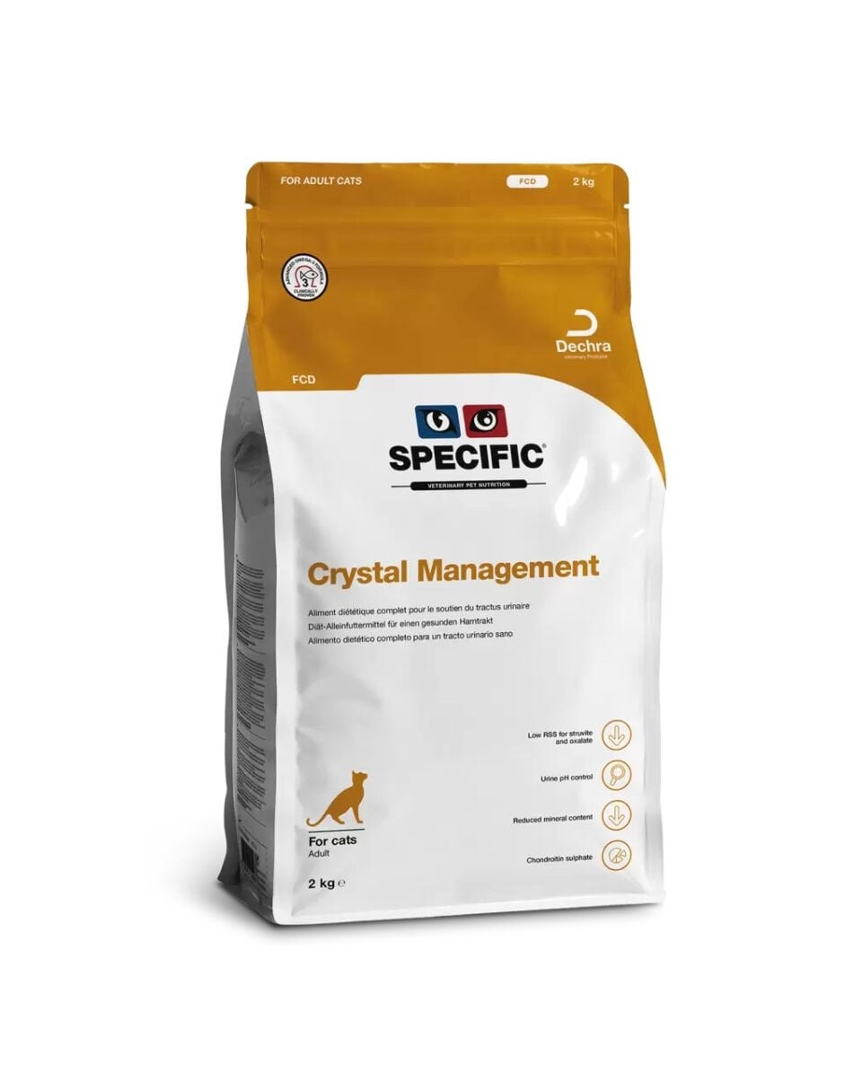 SPECIFIC Cat FCD Crystal Management est un aliment sec utilisé pour dissoudre et réduire la formation de struvites et d'oxalates chez les chats de plus de 6 mois.