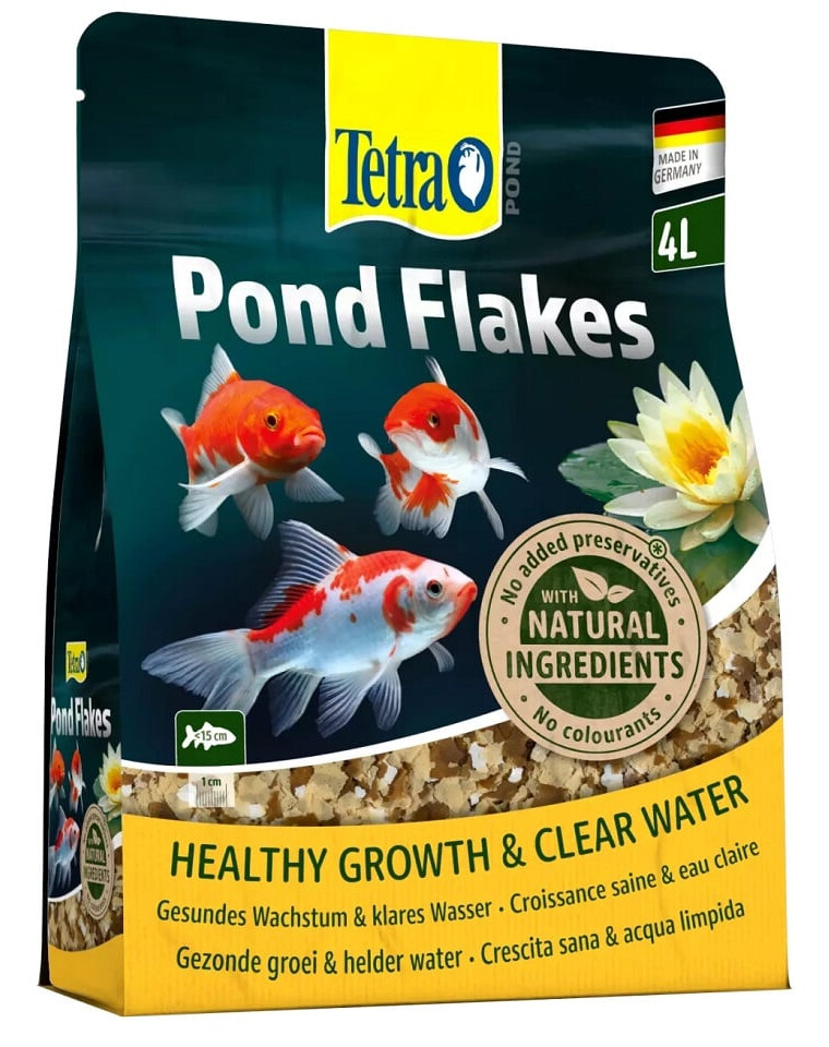 Tetra Pond Flakes est un aliment varié, biologiquement équilibré et sain qui convient à tous les types de poissons de votre bassin. Le mélange spécial de trois flocons constitue une alimentation complète et équilibrée contenant des protéines de haute qualité qui stimulent la croissance des poissons.