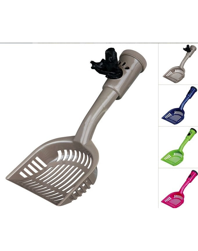 Pelle à litière, avec un sac à déchets dans la poignée (20 sachets inclus). Taille M, 38 cm. Mélange de couleurs, la couleur sera envoyée au hasard.