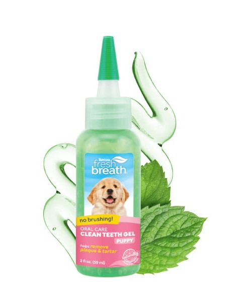 Dents PROPRES - Pas de brossage nécessaire ! Le gel d'hygiène bucco-dentaire Mint-Fresh Puppy est un nettoyant doux qui élimine la plaque, le tartre et les bactéries responsables de la mauvaise haleine, pour une bouche plus saine.