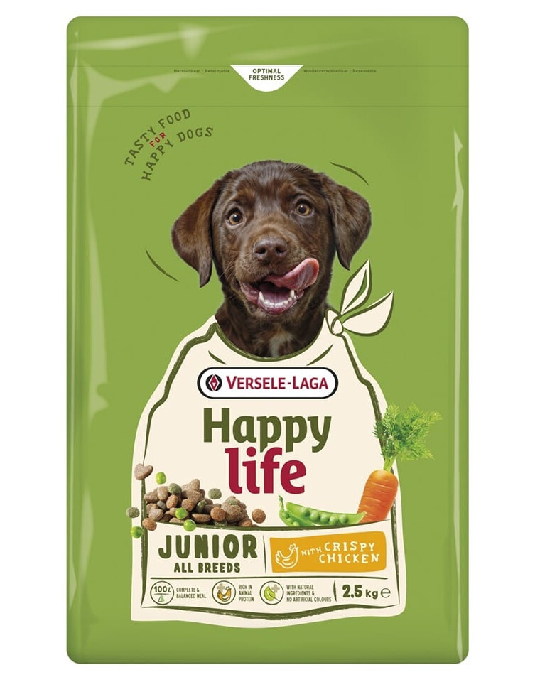 La nourriture Happy Life Junior Chicken a été développée en tenant compte des besoins des chiots et des jeunes chiens pendant leur période de croissance intensive. C'est une formule 100% complète et équilibrée, fournissant tous les nutriments essentiels nécessaires à un développement correct et à une vie énergique.