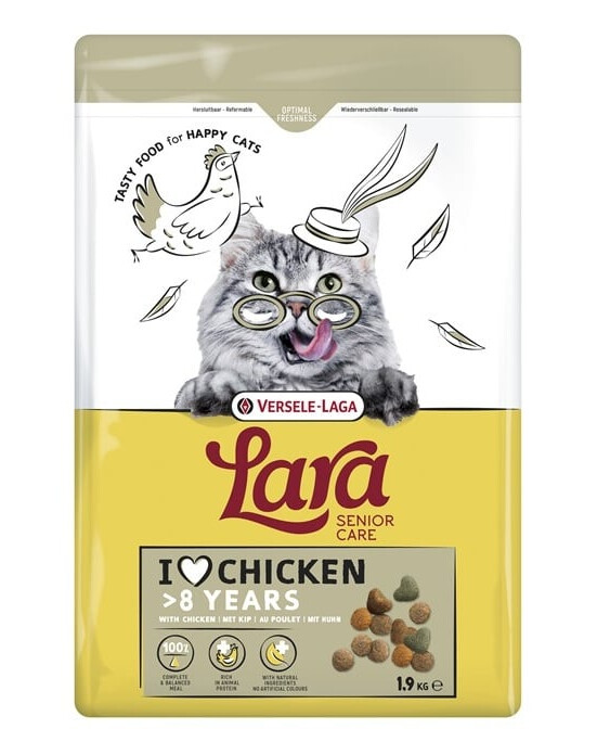 Lara Senior est une nourriture sèche complète et équilibrée au poulet, spécialement conçue pour les chats âgés de plus de 7 ans. Sa formule a été élaborée pour soutenir l'organisme à un âge mûr — elle fournit des proportions adéquates de protéines, de graisses, de vitamines et de minéraux qui aident à maintenir la vitalité et le bon état de santé des seniors.