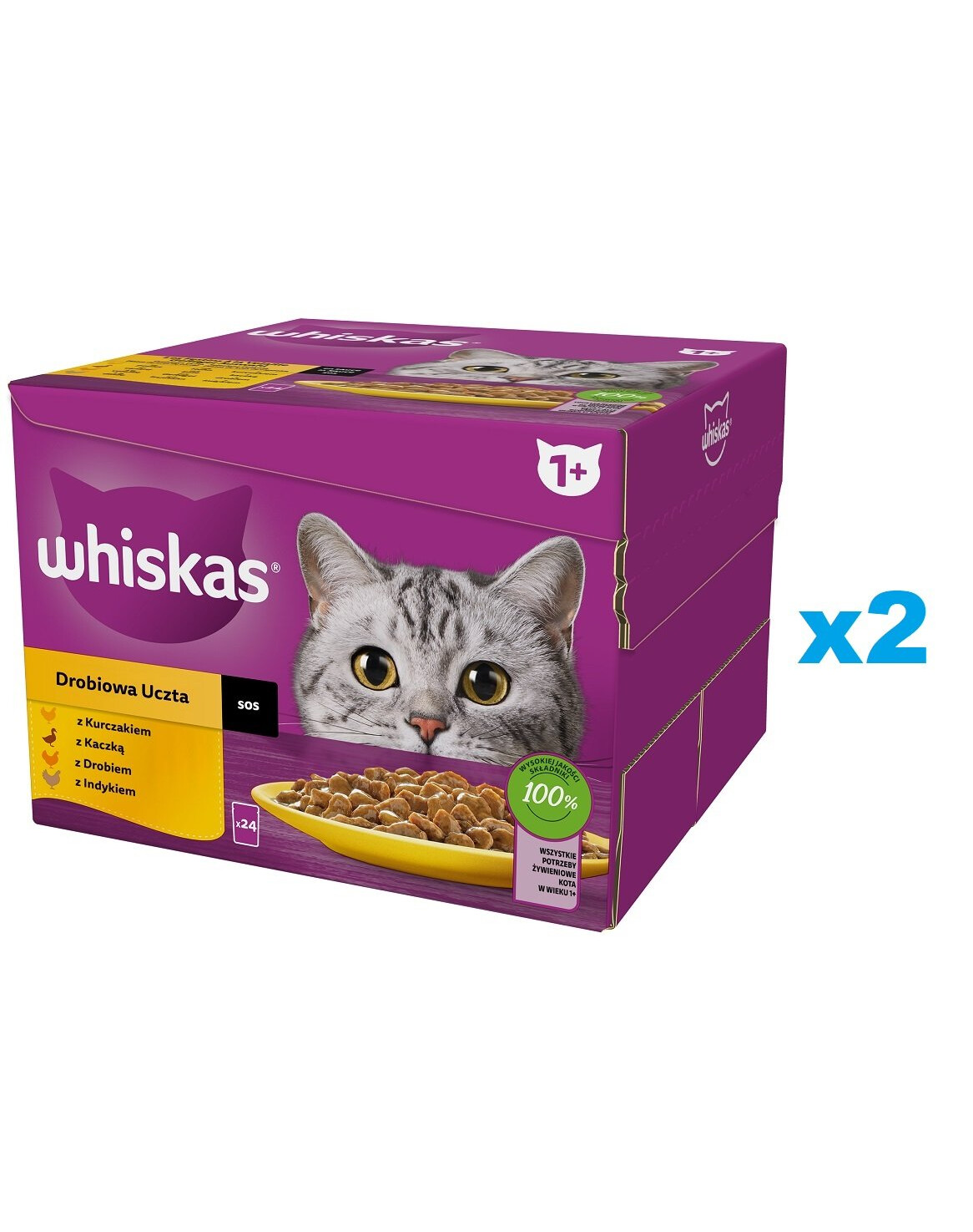 Whiskas Poultry Feast en sauce a été spécialement formulé pour conserver les bienfaits naturels et le goût des ingrédients de la plus haute qualité. Ils feront courir votre chat vers sa gamelle plus vite qu'avant ! Votre ami félin adorera l'une des quatre saveurs proposées, à savoir : Poulet, Canard, Volaille, Dinde. Cette délicieuse friandise portable contient du zinc pour favoriser la santé de la peau et du pelage, et le bon équilibre des minéraux aide à maintenir la santé des voies urinaires de votre animal. Des chatons enjoués aux beaux chats adultes, nos délicieuses recettes sont conçues pour que les chats de tous âges ronronnent joyeusement à l'heure du repas et au-delà.