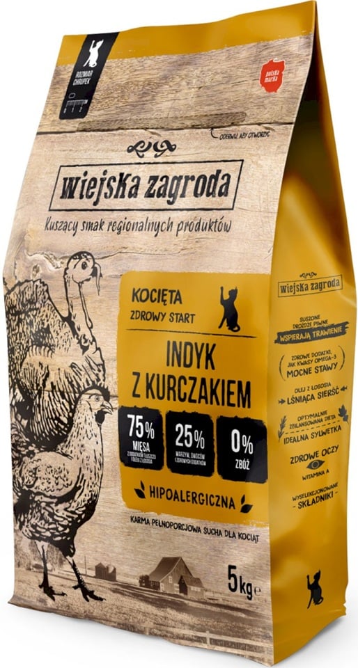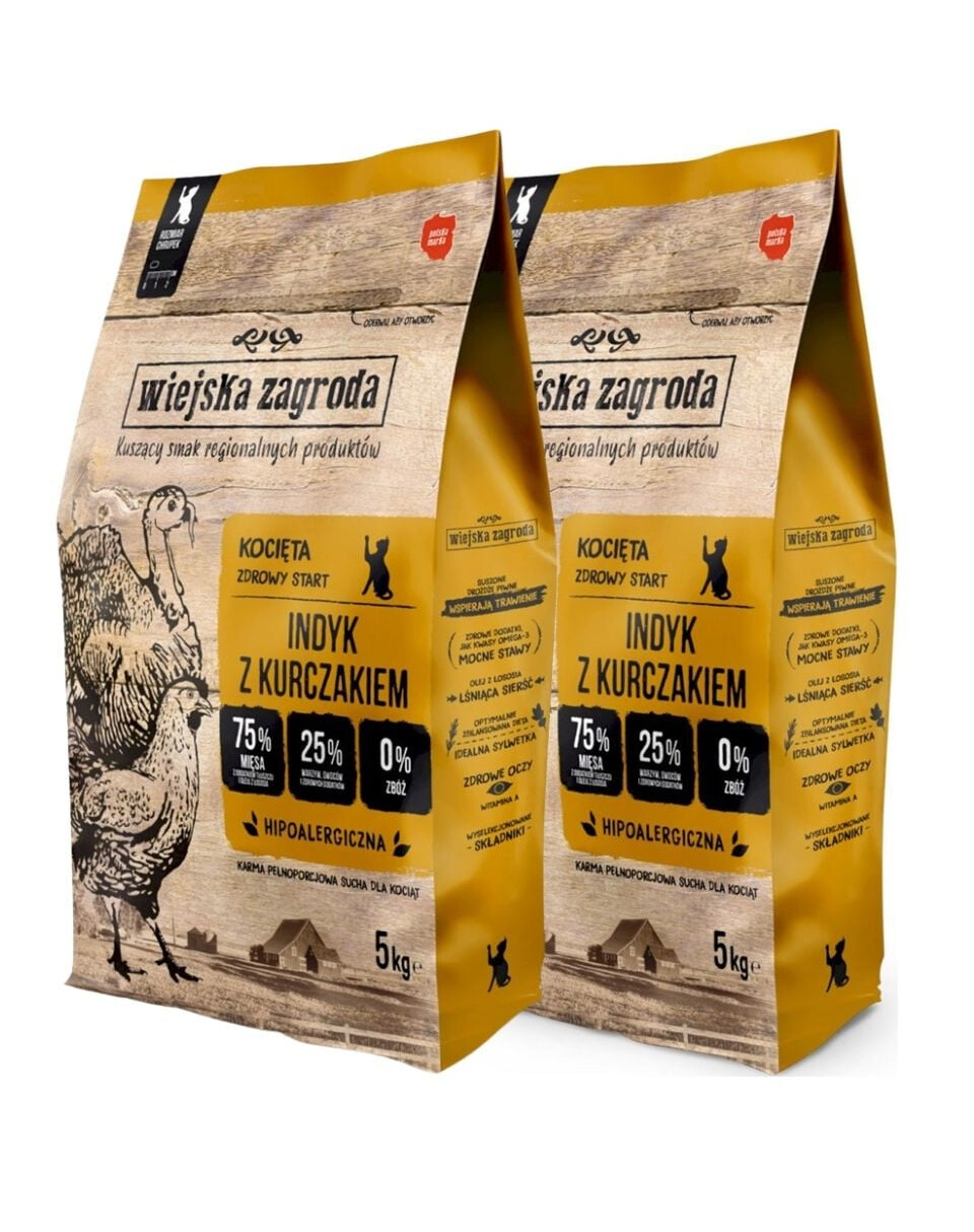WIEJSKA ZAGRODA Dinde & poulet pour chatons 2×5 kg