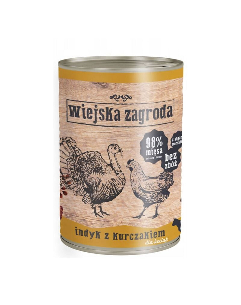 dinde 35% (dont env. 80% de viande musculaire et cardiaque, env. 20% de foie), poulet 35% (100% de viande musculaire), bouillon de dinde et de poulet 28,4%, minéraux 1%, huile de saumon 0,5%, spiruline 0,1%.
