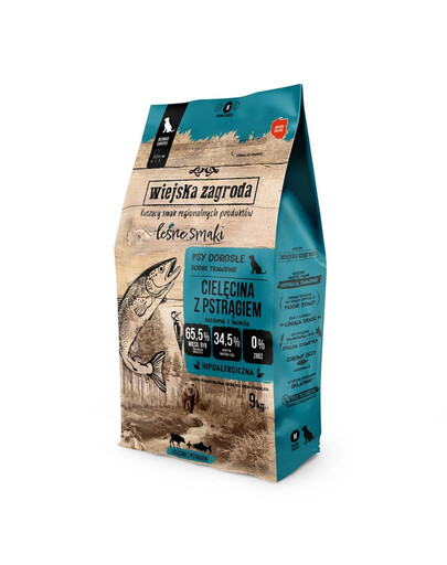 WIEJSKA ZAGRODA Leśne smaki - Veau avec croustillants de truite pour chiens de taille moyenne - M 9kg