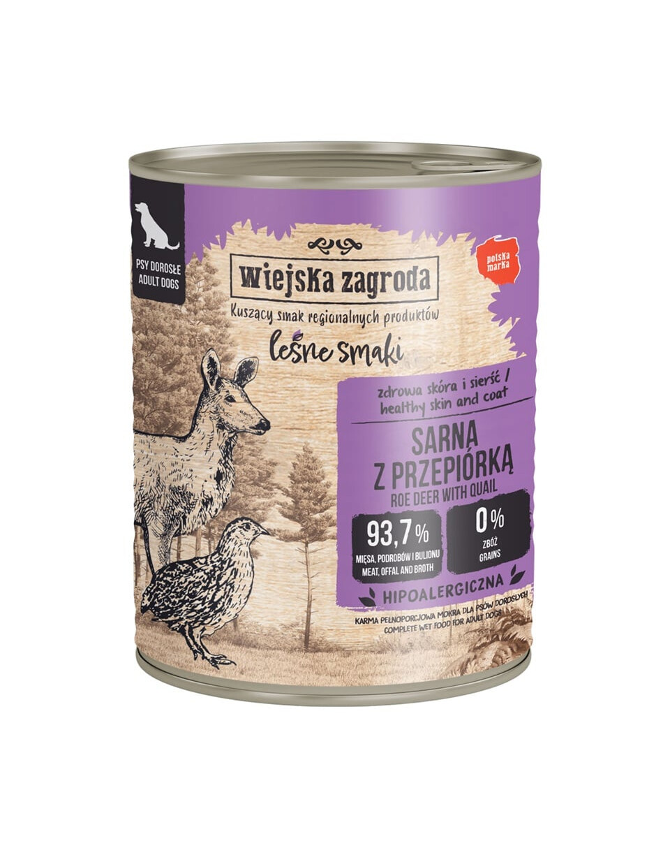 Découvrez les nourritures fonctionnelles LEŚNE SMAKI de Wiejska Zagroda ! Soigneusement élaborées par des diététiciens, les recettes reposent sur les habitudes alimentaires primaires des chiens, offrant à vos compagnons tout ce qui est le meilleur pour eux dans la nature. Ces formules extraordinaires sont une combinaison saine de précieuses viandes de forêt, telles que : chevreuil, sanglier, cerf, ou truite avec des viandes de valeur : bœuf, veau, porc, canard, agneau, caille ou lapin.