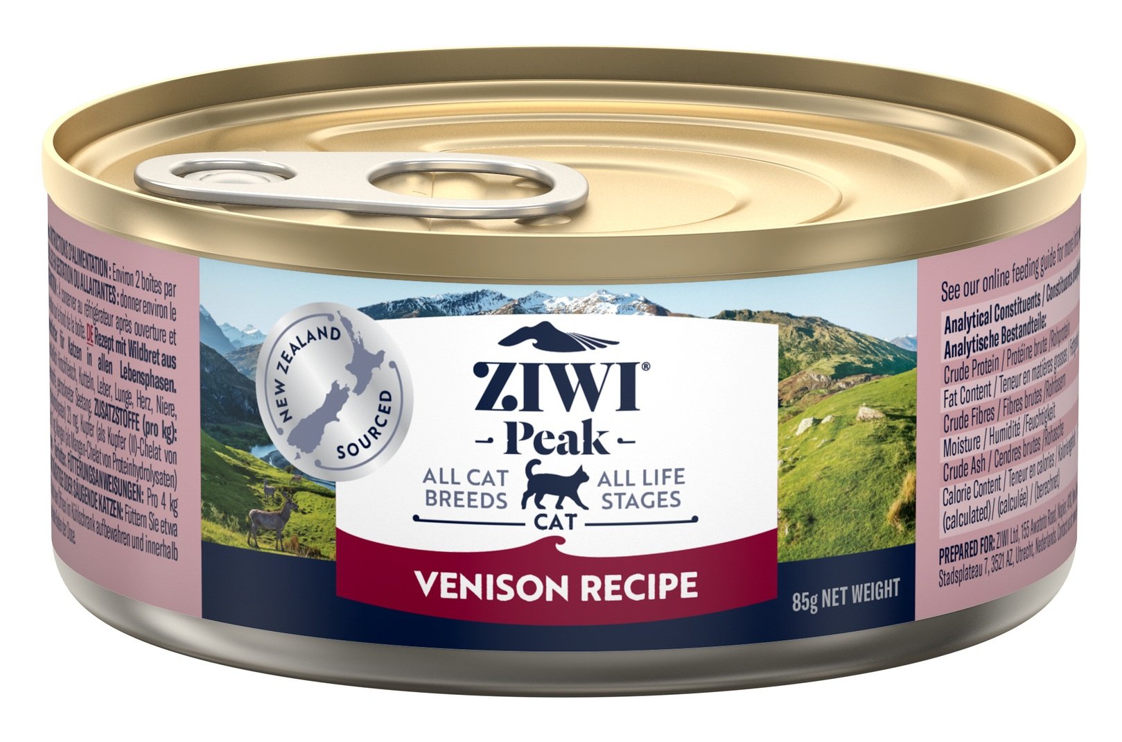 ZIWI Peak Venison est une nouvelle nourriture mono-protéinée idéale pour les chats de toutes races et à tous les stades de la vie. Composée de venaison en liberté, élevée de manière éthique dans des pâturages couverts d'herbes luxuriantes et indigènes dans les vallées reculées de l'île du Sud de la Nouvelle-Zélande.