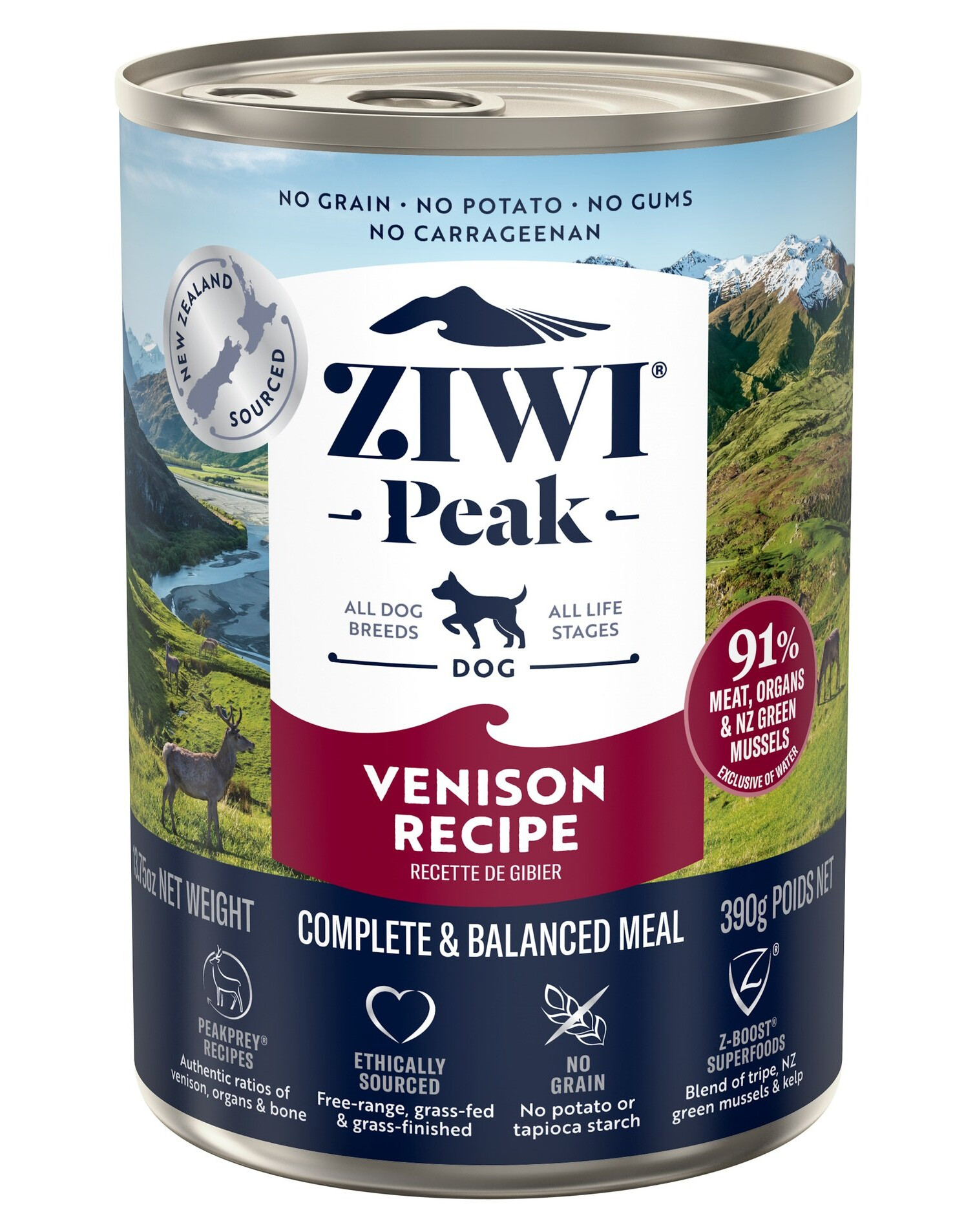 ZIWI Peak Venison est une nourriture innovante mono-protéique idéal pour toutes les races et tous les stades de la vie, en particulier pour les chiens souffrant de sensibilités alimentaires. Il contient de la venaison élevée en plein air, de manière éthique, dans des pâturages riches en herbes indigènes, dans les vallées reculées de l'île du Sud de la Nouvelle-Zélande. Un choix naturellement délicieux pour que votre chien puisse suivre les aventures de la vie.